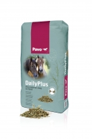 Pavo DailyPlus es una mezcla de forrajes equilibrada compuesta entre otras cosas, por alfalfa y hierba Timothy, conocida por ser una fuente de fibra con bajo contenido de azúcar y muy nutritiva para los caballos. Pavo DailyPlus no contiene cereales ni melaza y es ideal para mezclar con el pienso o con los suplementos diarios. De esta manera conviertes la comida de pienso en una comida con forraje adicional saludable. La estructura rica en fibra de Pavo DailyPlus asegura que tu caballo mastica más y que, además, tarde hasta tres veces más en ingerir sus pellets o muesli. El mayor tiempo de alimentación y la producción adicional de saliva que se produce favorecen una función estomacal e intestinal saludable. La achicoria y la pulpa de manzana añadidas (prebióticos) favorecen aún más la flora intestinal. El hecho de que tu caballo tarde más tiempo en comer también ayuda a evitar el aburrimiento y puede ser una solución para los vicios en la cuadra.
